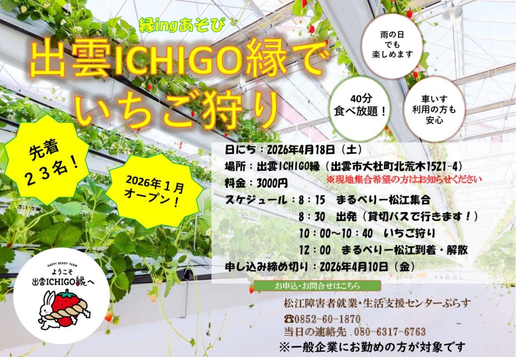 4/18(土)に出雲ICHIGO縁へ「いちご狩り」に出かけます🍓